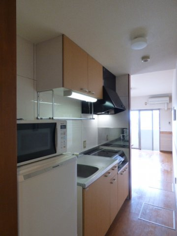 冷蔵庫、電子レンジ有!収納も上下にあります! ※掲載画像は同タイプの別室内画像のためイメージとしてご参照ください。