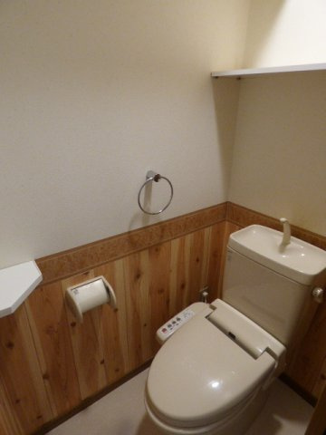 温水洗浄便座で快適♪タオル掛け、収納棚もあります! ※掲載画像は同タイプの別室内画像のためイメージとしてご参照ください。